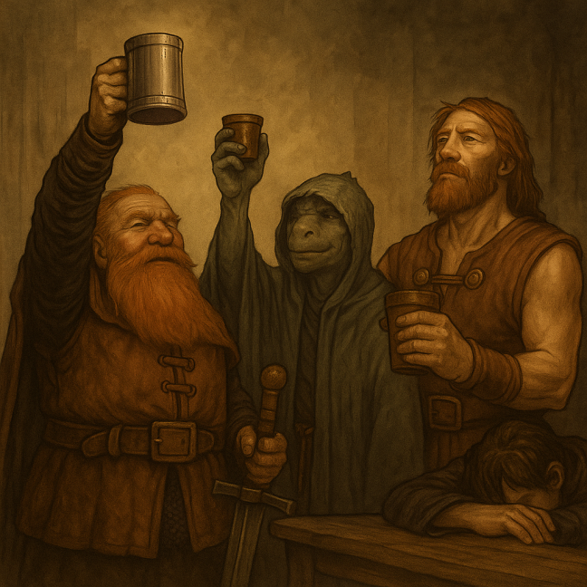 Sie erhoben ihre Becher und ein Toast auf die gefallenen Kameraden, hallte durch die Taverne bis hinaus in die Gassen der Stadt.